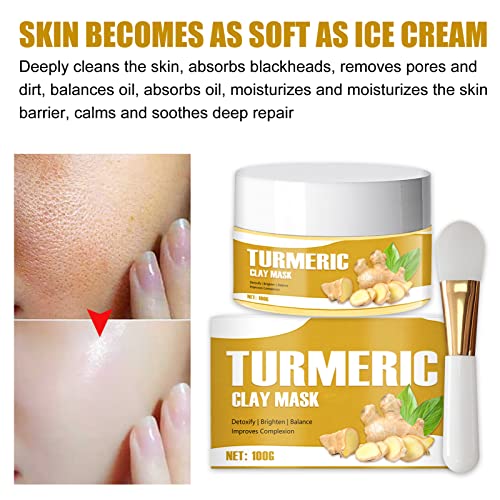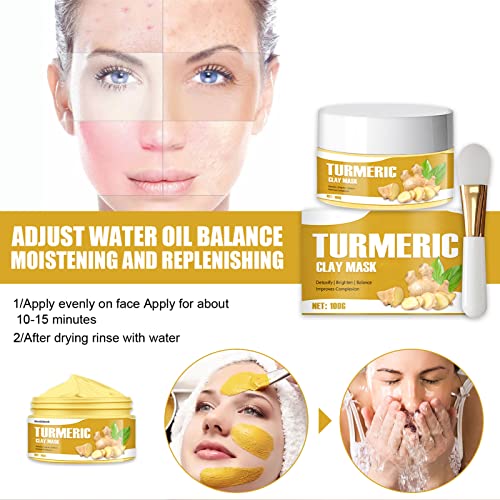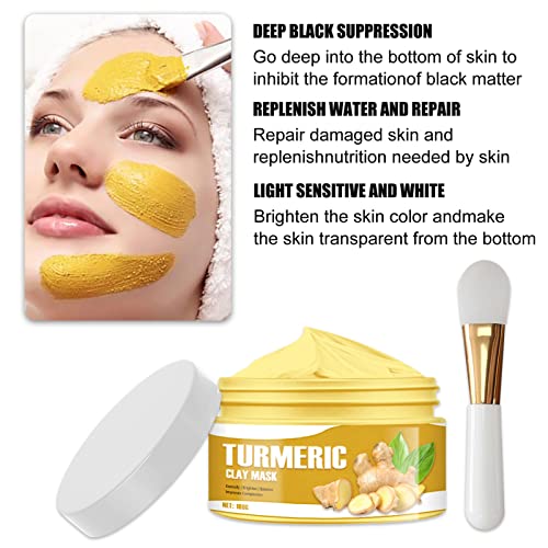 Specification: 2 PCS Turmeric Facial Mask, Tumeric Masks for Dark Spots, Turmeric Mask with Brush, Tumeric Face Lightening Face Mask…
