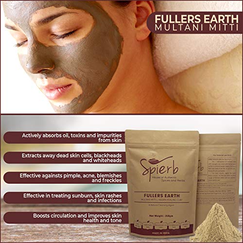 Spierb Fullers Earth Powder Indian Healing Clay Bentonite Clay Multani Mitti Mud Powder for Face Mask Pure Multani Clay…