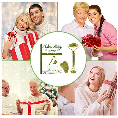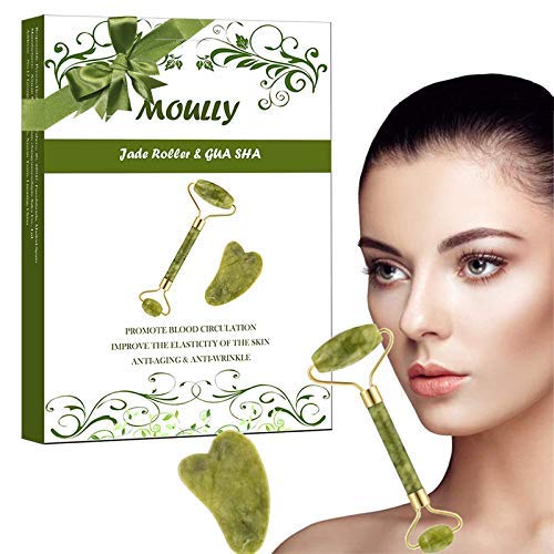 MOULLY Jade Roller, Facial Massage Stone Gua Sha Jade, Jade Facial Roller, Massager Roller Tools Anti Aging, Jade Roller…