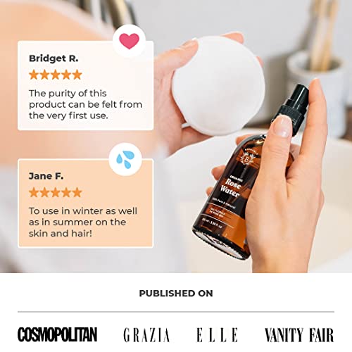 🌿 ULTRAVERSE EN ONBEWERKTE ACTIEVE BESTANDDELEN | Onze teler in Bulgarije plukt op traditionele wijze de verse rozen. Ons biologische rozenwater is ontstaan uit sterk geconcentreerde etherische rozenolie. Gegarandeerd zonder enige toevoeging van alcohol en conserveermiddelen.